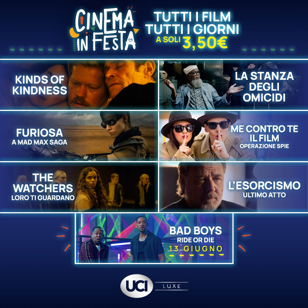 Tanti film ti aspettano nelle sale UCI Cinemas ad un prezzo davvero unico per il #CinemaInFesta Tutti i giorni e tutti i film saranno a 3,50 euro, comprese le nuove uscite e Bad Boys: Ride or Die che potrete trovare l’ultimo giorno, 13 giugno!